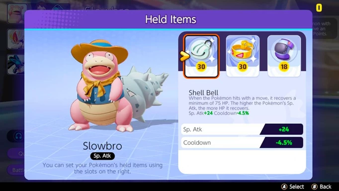 Pokemon UNITE Slowbro bedste bygning: genstande