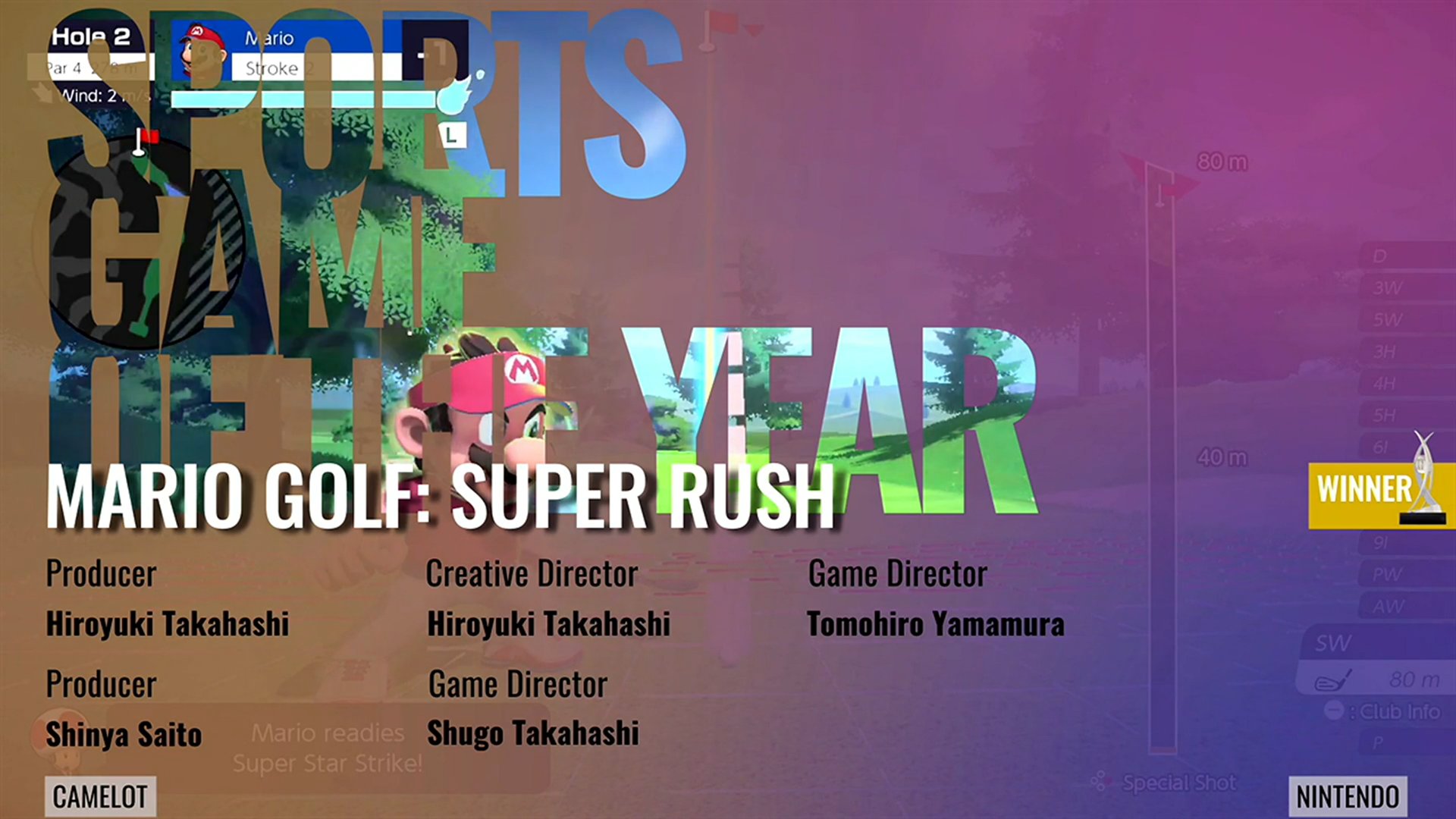 Derudover hævdede Mario Golf: Super Rush, udviklet af Camelot, kappen som Årets Sportsspil.